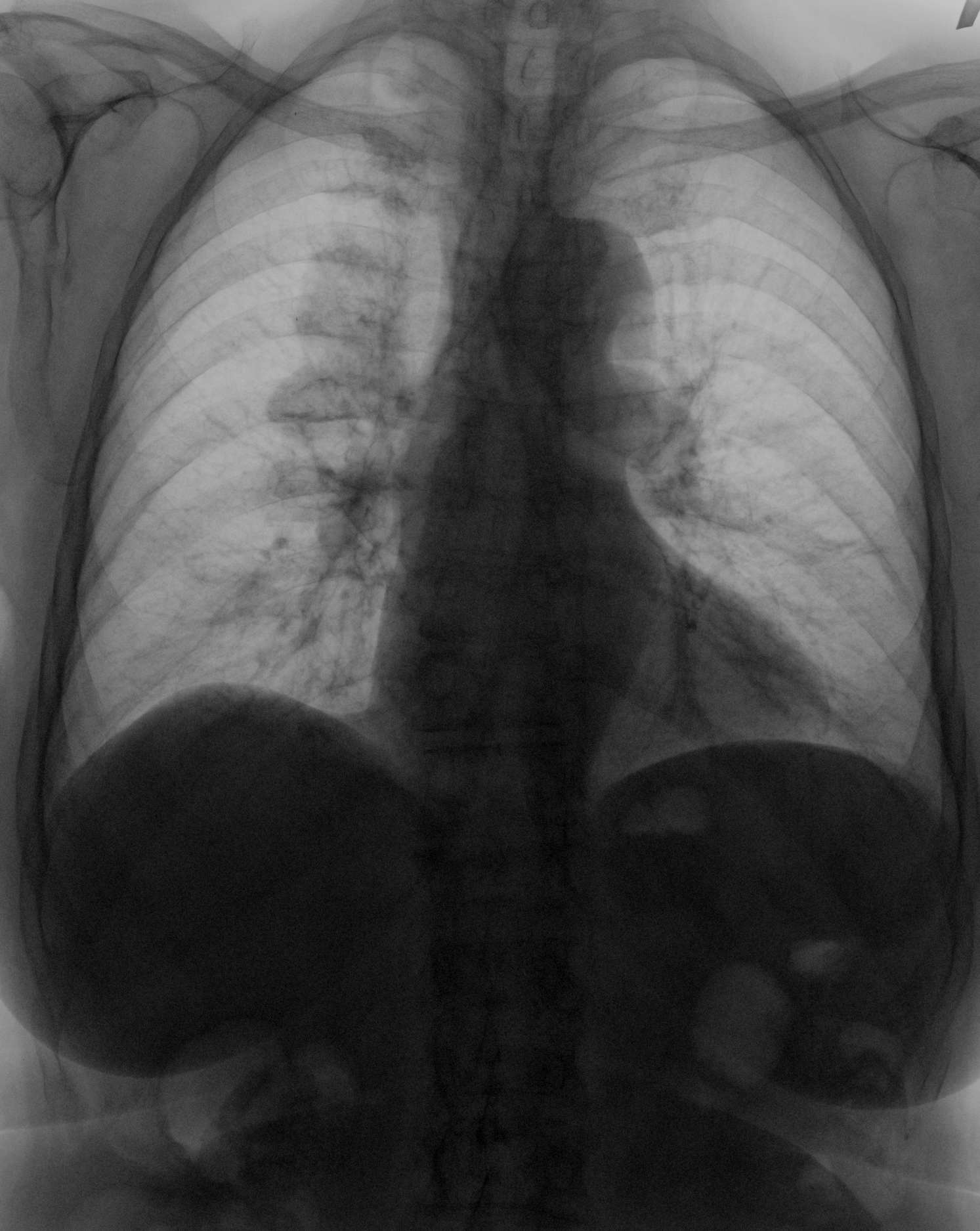 Пациентка 82 года поступила в приемное отделение  с Ds: ЖКБ. К нам направили для исключения пневмонии и на предмет свободного газа в брюшной полости.