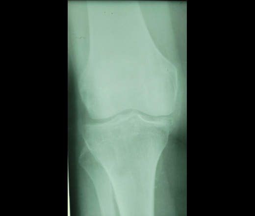 Здравствуйте! Женщина, 65. Из анамнеза - боль в коленях, больше слева. Смущает медиальный мыщелок большеберцовой кости. Как считаете, есть/был ди тут когда-то перелом? Очень странная форма.