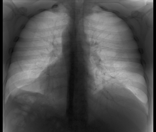 Мужчина 40 лет. Диагностическая флюорография. Пришел на контроль, был поставлен диагноз 01.11.25 пневмония с\д, справа, в другой клинике. Смущает тень, которая видна только на задней проекции, в верхней доле справа, что это может быть? И еще, как считаете, есть выпот слева?
