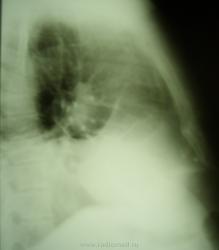 Женщина обратилась с жалобами по поводу кашля и температуры, которая поднимается до38 град. Был сделан снимок в двух проекциях.