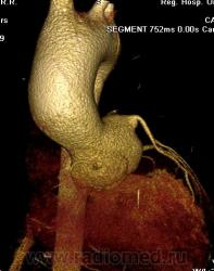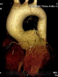 Да все правильно Вы написали. Молчание - знак согласия. Диаметр сказать не могу, случай не свежий, надо искать в архиве. Но видно же, что очень большой в восходящей части и синусы расширены. Левая коронарнарная артерия доминирует, устья также расширены. Извините, что во-время не откликнулась, видела Ваше наблюдение, но времени постоянный дефицит, заскакиваю на сайт буквально на пару минут, интересно все посмотреть, а писать уже и времени нет.