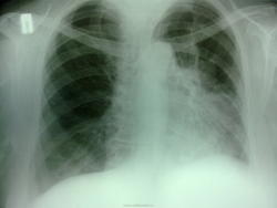 Вы абсолютно правы!!! Еще раз внимательно посмотрела на снимки-первый с разворотом-в нижнем поле тень сердца, а на боковом левом четко видна тень опухоли с гиповентиляцией S 3. Никогда не торопись!