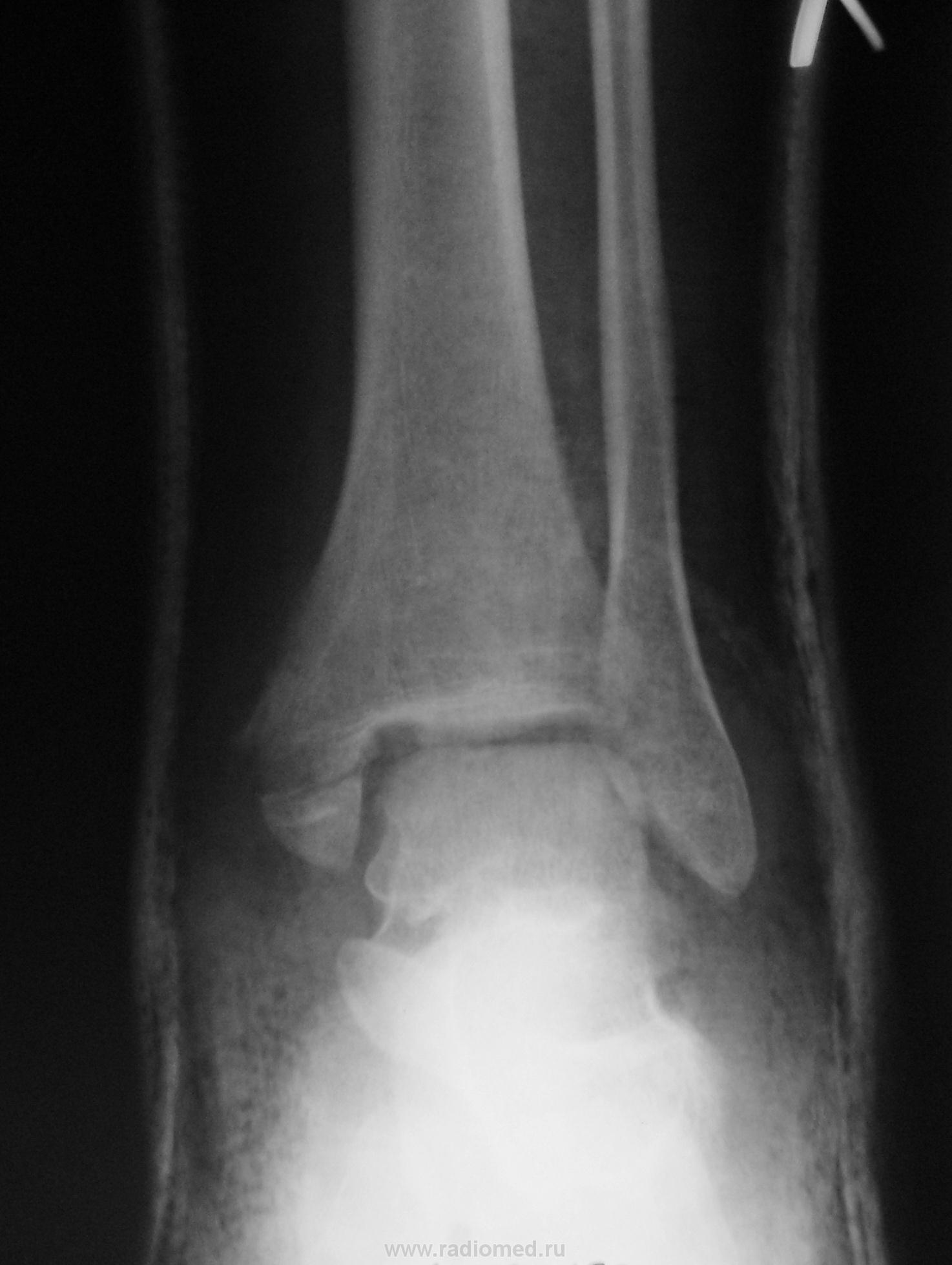 состояние отломков неудовлетворительное, перелом внутренней лодыжки и заднего края очевиден, как и наружний подвывих. логично искать либо разрыв ДМС либо перелом наружной лодыжки