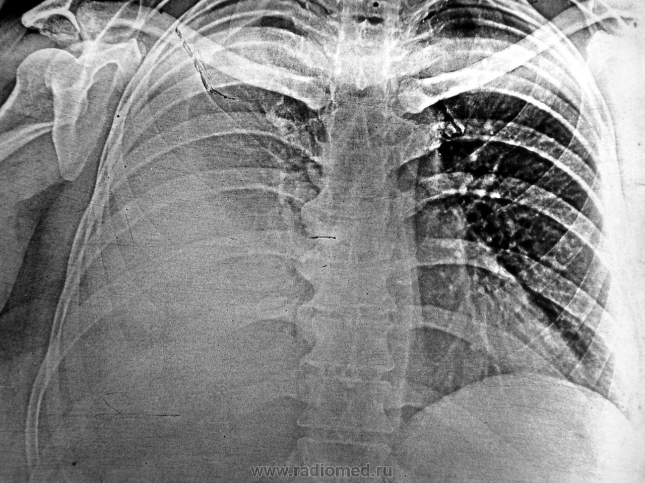 Правый снимок -плеврит воспалительной природы, пневмония, благополучный исход