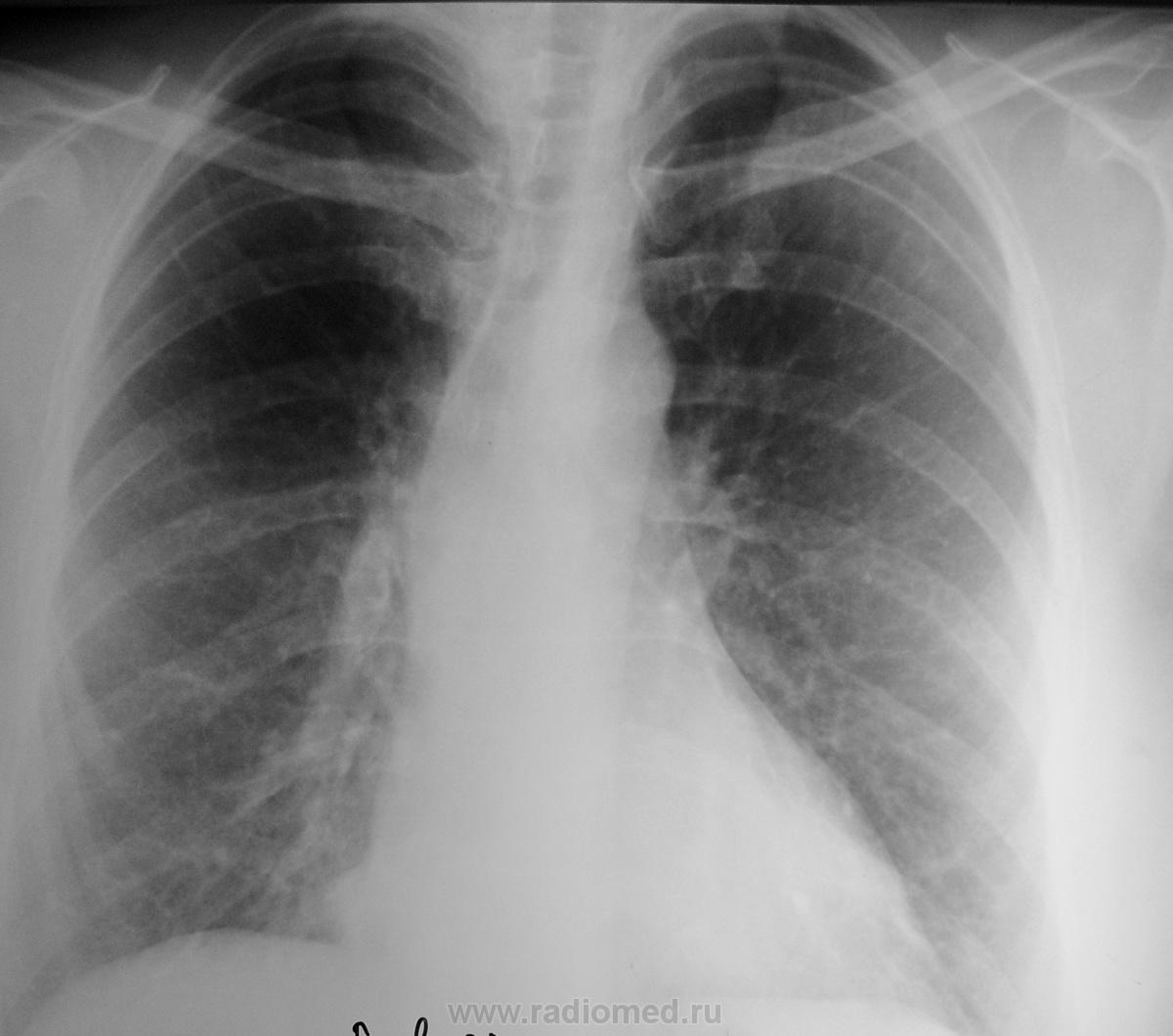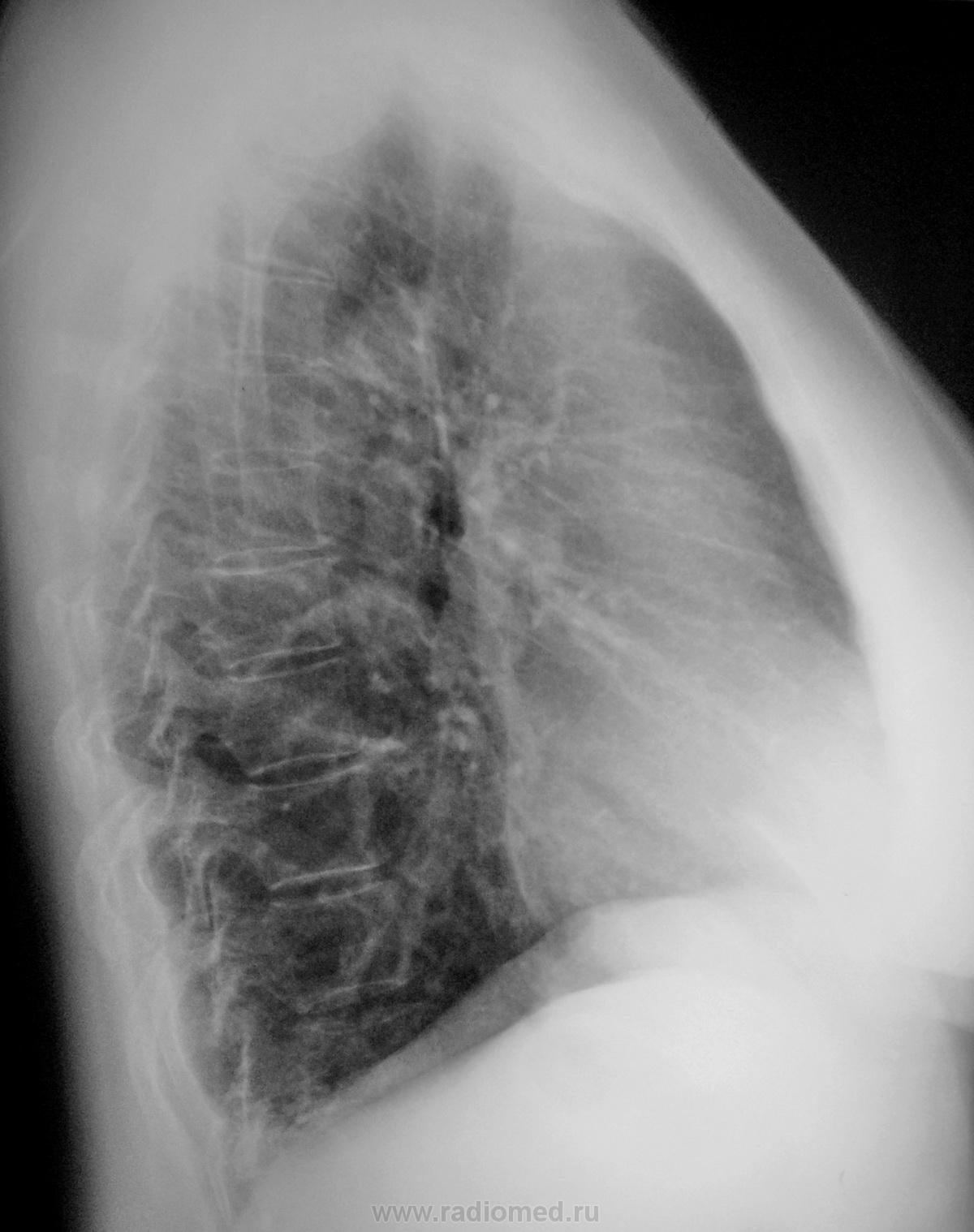 Женщина 50 лет обратилась с жалобами к терапевту по поводу высокой температуры(39) и кашля, была направлена на снимок. Я поставил пневмонию в S5 правого лёгкого, но немного засомневался. Что скажут уважаемые коллеги?