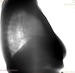 Пациентка 1945 г.р. Флг для ВТЭК, жалоб особых нет, температура нормальная, дыхание свободное. Архив от 2010 - без особенностей. В начале апреля 2014 г АКШ, согласно выписке R перед операцией - без особенностей, после операции - отмечалось высокое стояние пр купола диафрагмы. Самих снимков нет. Дисковидный ателектаз в S9 справа, тень с четкой верхней границей (в медиальных её отделах) над диафрагмой на прямом - признаки гиповентиляции? Или тень - плевральные наложения? Требуется ли контроль\дообследование?