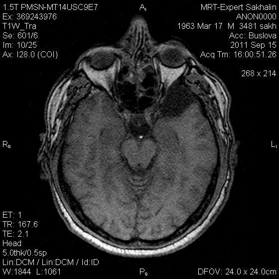 Извиняюсь не распознала флаер. В области полюса левой височной доли арахноидальная киста. Признаков масс- эффекта не вижу. Что касается базальных ядер не уверена что это есть патология. Но еще посмотрю подумаю.