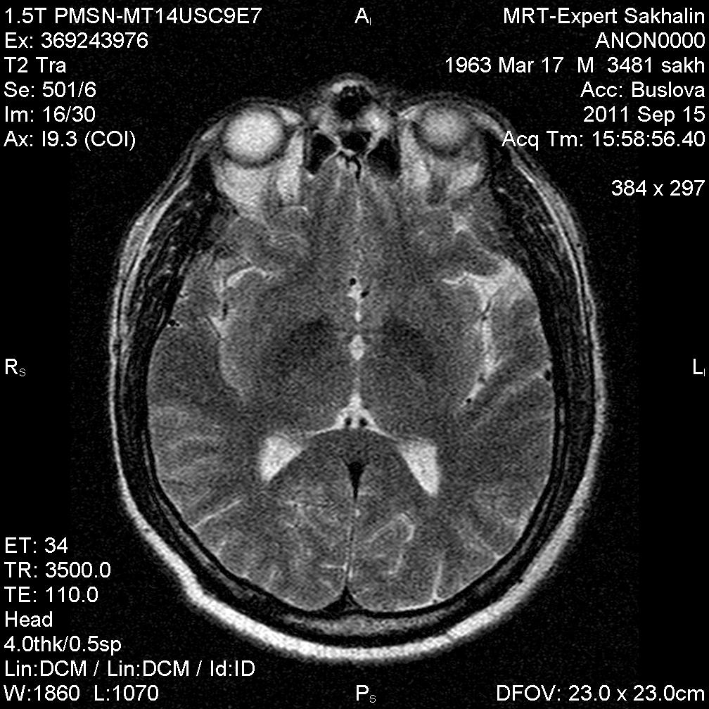 Уж больно бросается в глаза симметричный пониженный сигнал от подкорковых образований. Я так понимаю вы пытаетесь исключить болезнь галлервордена- шпатца?