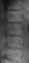Молодой человек пришёл на снимок с жалобами на боли в поясничном отделе. Конечно побывал у невролога. Снимки сделали, но осталась какая-то неясность к вогнутой форме позвонков. В книжках описывалась такая форма. Здесь это применительно к патологии или нет?