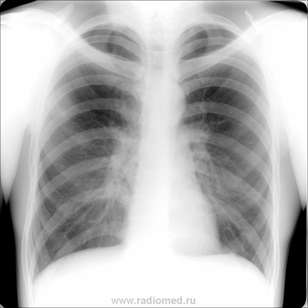 Здравствуйте, коллеги. Молодой человек 1989 г.р. приболел в декабре 2010г. 20.12.10г. сделан снимок. Болен около двух недель: потливость, недомогание, покашливание, периодический под"ем температуры до субфебрильных цифр, особенно по вечерам. СОЭ 15 мм/ч, L 9,5. Какие будут мнения?