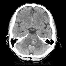 Ну да, перифокального отека нет, лишь IV желудочек компремирован. МРТ точно рассудит.