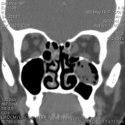 Красивое наблюдение, очень впечатляет. На рентгенограммах никогда, по всей видимости, не увидеть такой вариант строения, когда гайморова состоит из двух, разделена костной перегородкой?