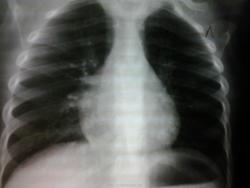 Как-то малоинформативно. Прямой переэкспонирован. А тень за грудиной ,возможно, за счет небольшого разворота. Есть впечатление, что утолщена тень плевры по ходу малой м/д щели, хотя повторюсь малоинформативно.