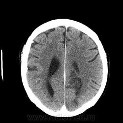 Уважаемые коллеги. Столкнулся с неоднозначной картиной при КТ головного мозга. Анамнез: мужчина с опухолью мочевого пузыря потерял сознание, сколько был без него - не знает, когда пришел в себя - "ослеп". Проведена КТ головного мозга с внутривенным "усилением". Чем могут быть, на ваш взгляд, обусловлены гиподенсивные зоны - метастазами или чем-то другим? Смущает, что нет типичного для метастаза феномена накопления контрастного вещества, да и вообще картина не характерная для них, на мой взгляд. Вот здесь http://files.mail.ru/67D10D5A26D74E27A6B5C2BFC12E9706 выложены две папки (нативное и с "усилением"), в которые упакованы изображения в формате dicom. Какие будут предположения? Благодарю за внимание. Нажимаем "читать далее"!