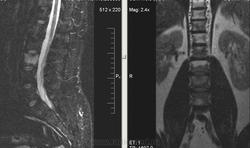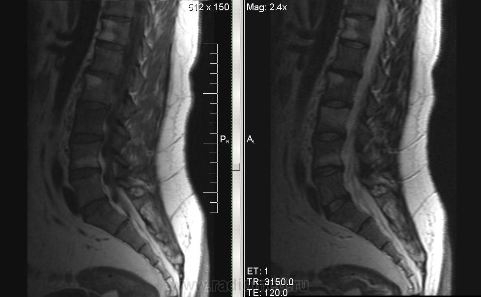 Сакроилеит. Так что спондилоартрит наиболее вероятен. И боль в правой ноге понятна. Я если у молодых людей причины для корешковых болей не вижу, делаю программу на крестцово-подвздошные суставы. Единственно, в позвоночнике обычно бывает отёк костного мозга апофизов, дугоотростчатых и рёберно-позвонковых суставов.