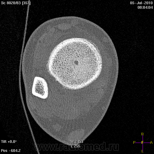 Только по рентгенограммам (без учета КТ) высказался-бы в пользу абсцесса Броди.