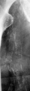 Иллюстрация 2, 3. Медиальнее шейки и проксимального мета-диафиза бедренной кости, на фоне мягких тканей определяются тени двух венозных сосудов, с выраженным отложением солей извести в их стенках.