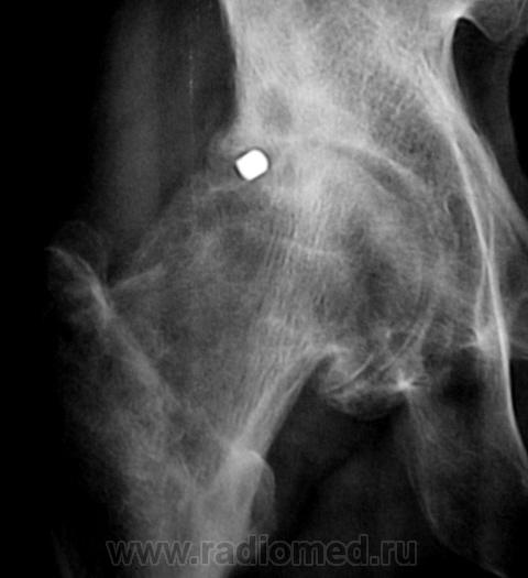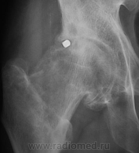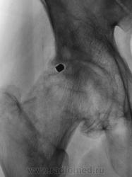 Для точной локализации пули нужна попендикулярная ( как в "Двух капитанах" - палочки должны быть попендикулярны) проэкция. Может и не причина артроза?