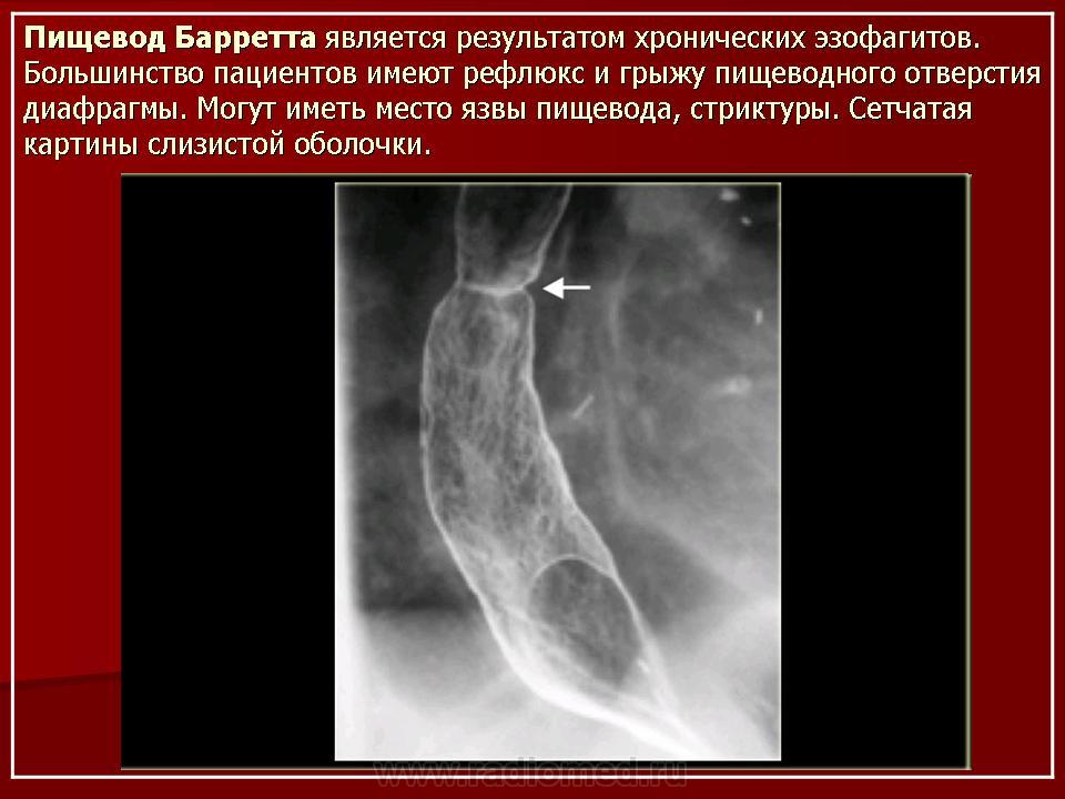 Пациент направлен на рентгенологическое исследование пищевода после ФГДС с диагнозом - "Пищевод Барретта".