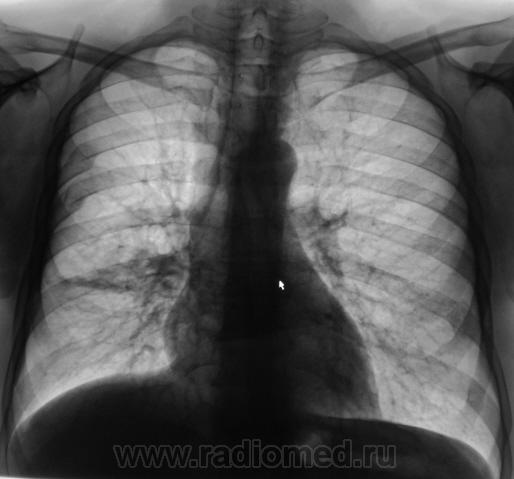 Скорее всего ателктаз 6 сегмента. Он явно объемно уменьшен, да и на качественной боковой можно найти ампутацию бронха, а на прямой томо - не все в поряде с корнем. Валентин Львович, доброе утро! Вы будете не собой, если не выложите серию боковых томограмм.