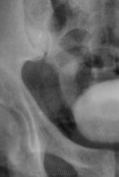Признавайтесь, куда делась средняя треть правого мочеточника? Ее как-будто ножом отрезали под линейку, а ниже-сплошное безобразие! "ЧТО" может как обезобразить орган-банальная МКБ с частичной обтурацией просвета или опухоль? А в пузыре тоже камни?