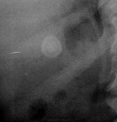 Да с камнем желчного то все понятно...но вот тень в проекции н\трети правого мочеточника ....весьма необычна...вопрос - куда ее "пристроить"?))))