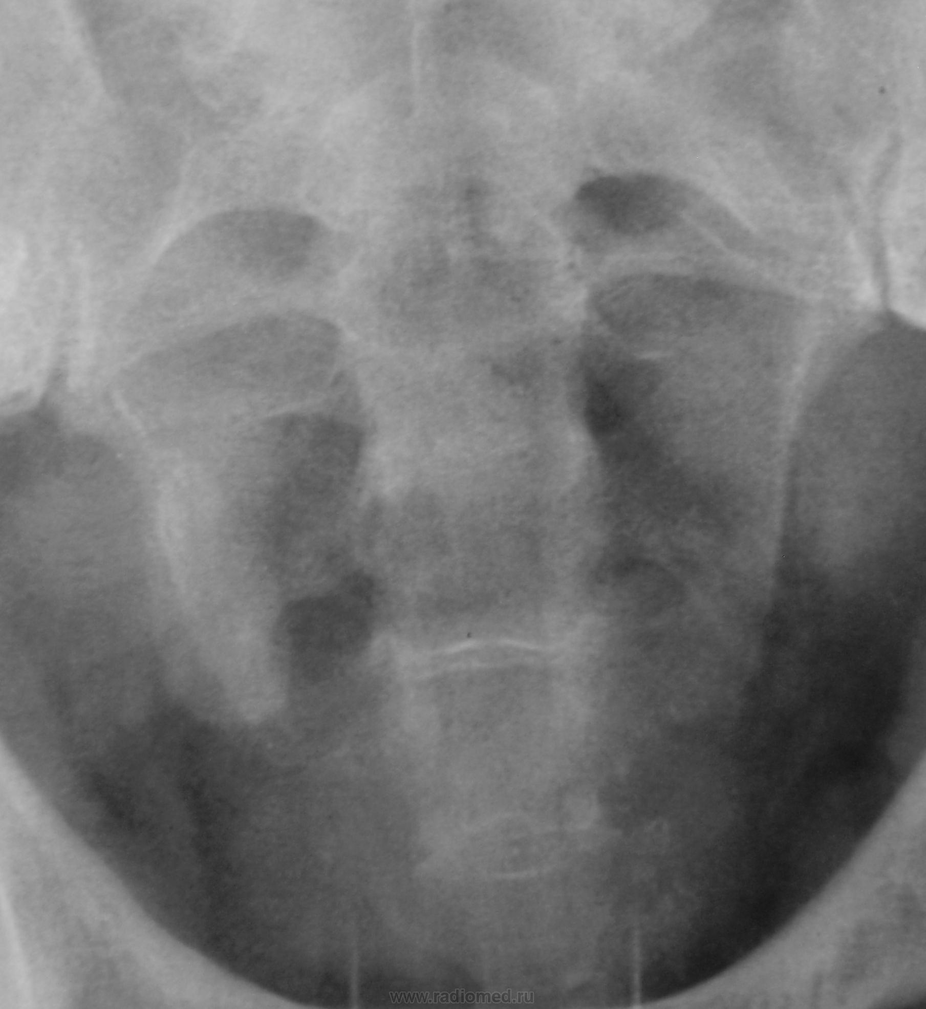 Мне кажется, что тень в проекции н/3 правого мочеточника не меняет своей интенсивности на ОМПС и экскреторных урограммах. Отсроченный снимок просится и рентгенография малого таза в косых проекциях. Возможно, это НЕЧТО сдавливает н/3 правого мочеточника извне.