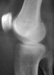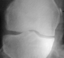 Пеллегрини - Штиды болезнь http://www.radiomed.ru/publications/kss-pellegrini-shtida-bolezn Хотя в наше время считалось, что не болезнь это, а так, синдром.