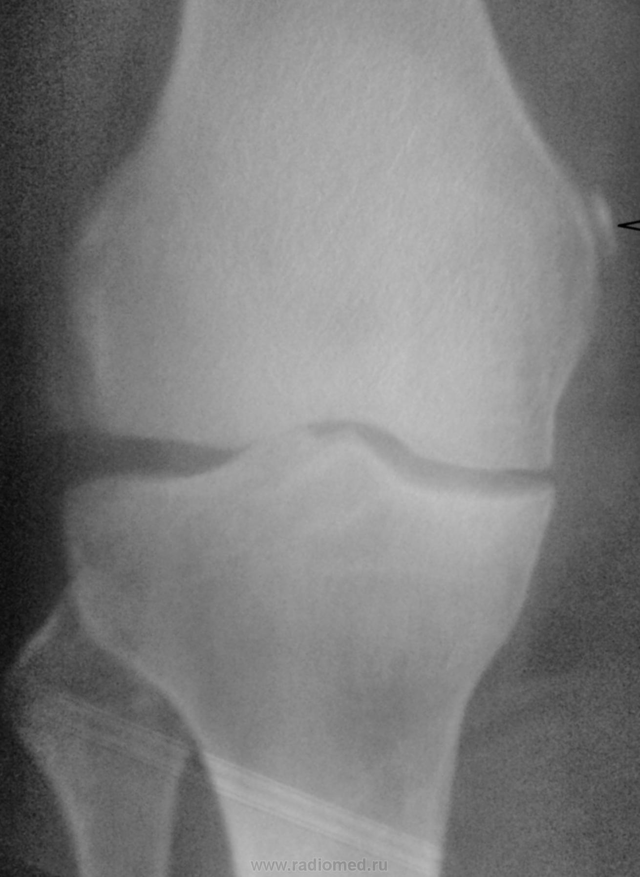 Пол пациента: Женский пол Тип патологии: Другое Область исследования: Скелетно-мышечная система Методы исследования: Rg Доброго времени суток! Коллеги, подскажите, что это может быть возле медиального надмыщелка бедренной кости? Пациентку 65 лет направил хирург с ДОА. Заранее спасибо. https://radiomed.ru/sites/default/files/styles/case_slider_image/public/user/12/12.foto0170-1.jpg?itok=EaLMu7dQ https://radiomed.ru/sites/default/files/styles/case_slider_image/public/user/12/13.foto0174.jpg?itok=p2Fa3XXR ID:24113 Пнд, 29/10/2012 - 23:01 #1 Almo Не на сайте Был на сайте: 9 часов 51 минут назад Зарегистрирован: 28.09.2008 - 18:50 Публикации: 8256 Тень Штида( внутренный мыщелок бедра). Пнд, 29/10/2012 - 23:02 #2 Андрей Юрьевич Не на сайте Был на сайте: 6 дней 14 часов назад Зарегистрирован: 16.11.2008 - 22:16 Публикации: 18098 Пеллегрини - Штиды болезнь http://www.radiomed.ru/publications/kss-pellegrini-shtida-bolezn Хотя в наше время считалось, что не болезнь это, а так, синдром. Андрей Юрьевич Пнд, 29/10/2012 - 23:05 #3 И.Бондаренко Не на сайте Был на сайте: 2 дня 7 часов назад Зарегистрирован: 13.09.2011 - 22:55 Публикации: 9206 +1 Втр, 30/10/2012 - 05:58 #4 Петр Николаевич Не на сайте Был на сайте: 3 года 10 месяцев назад Зарегистрирован: 15.03.2011 - 13:22 Публикации: 150 Болезнь Пеллегрини - Штида +1 Втр, 30/10/2012 - 19:31 #5 maker4ik Не на сайте Был на сайте: 8 лет 7 месяцев назад Зарегистрирован: 19.10.2011 - 17:49 Публикации: 2682 Плюсую к Пеллегрини-Штида.