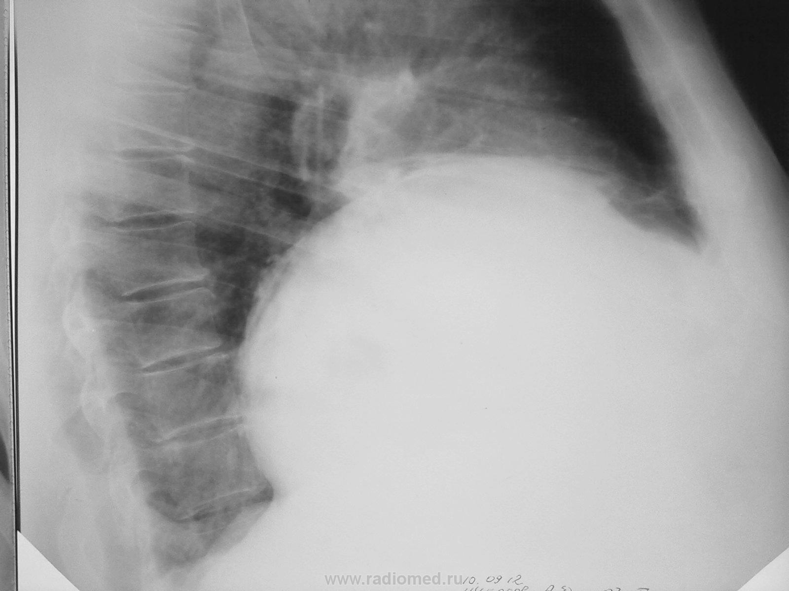 а как отдифференцировать методами классической рентгенологии осумкованный выпот от кисты в данном случае? КТ у нас в отпуске скопию стоя сделал, глоток бария дал, ничего нового не получил
