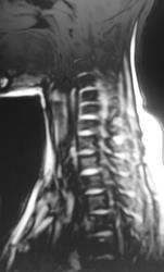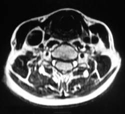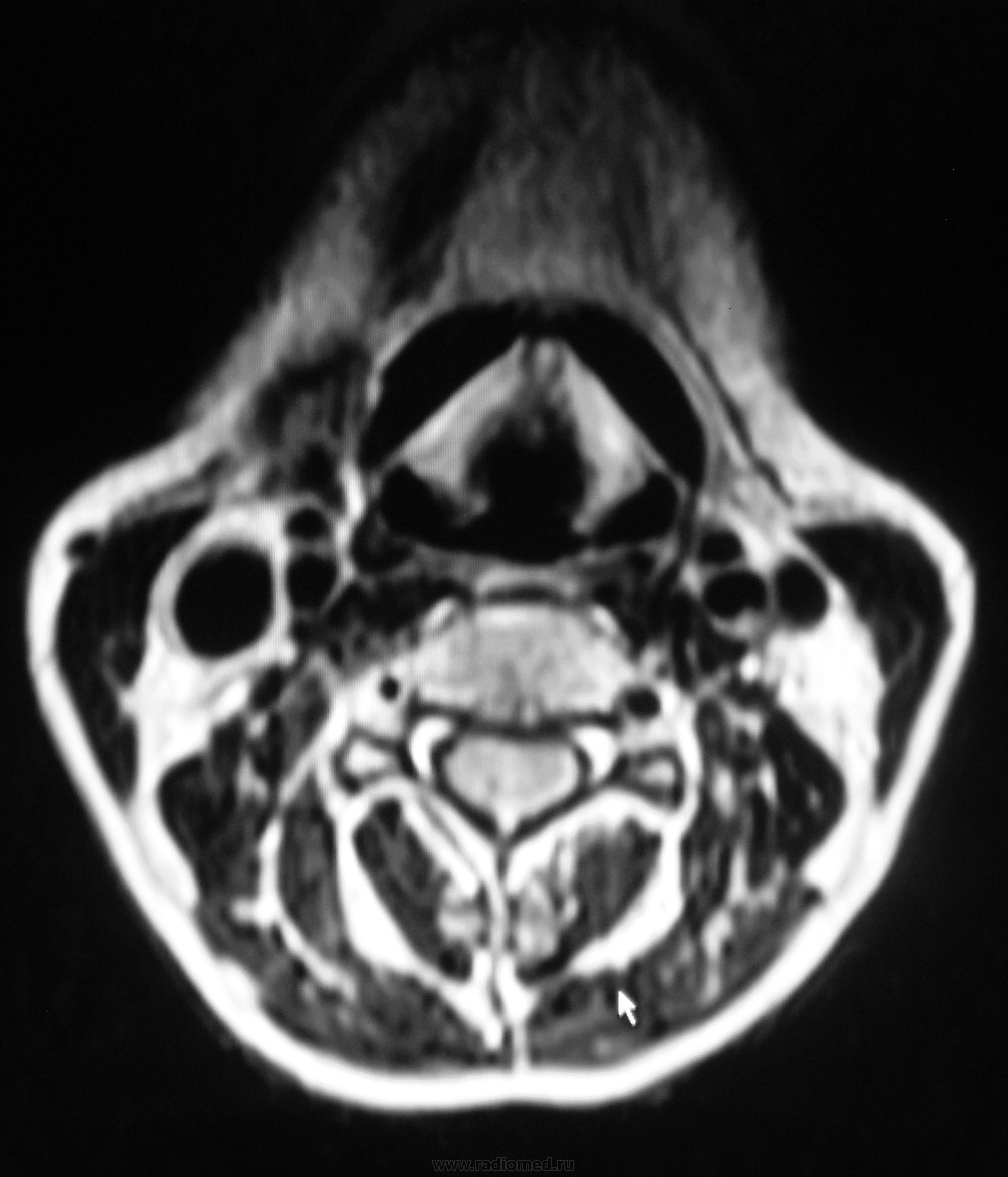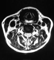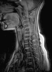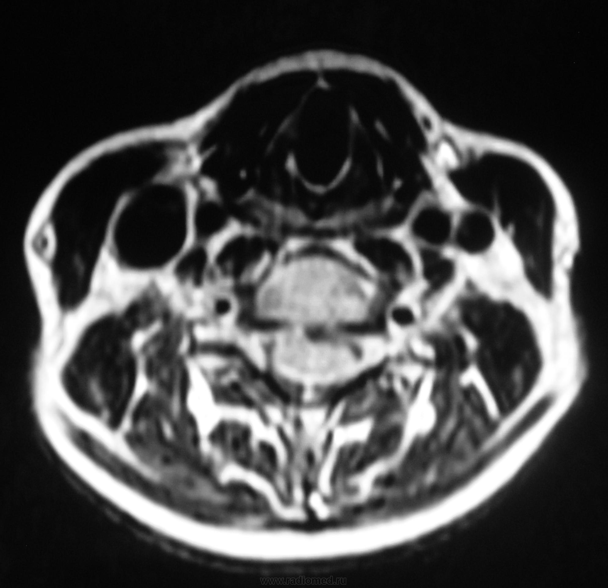 Шейный отдел: патологический кифоз с вершиной на С5, диско-остеофитические комплексы. Яремные вены могут быть различного диаметра и это норма. мне если честно не нравится мр-сигнал от спинного мозга на уровне и ниже кифоза, но разглядеть не получается.. качество. на счет головы согласна ретроцеребеллярная киста, наружная заместительная гидроцефалия .