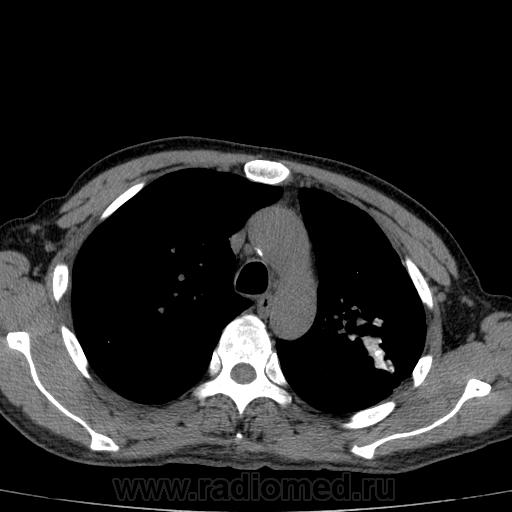 Нет, итл в/д левого л-го. Подняла архив, процесс был слева. Полость появилась справа, значит рецидив. Снят в прошл году с учета.