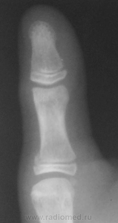 А что смущает? вроде обычный остеоэпифезиолиз проксимального эпифиза дистальной фаланги 1пальца кисти.