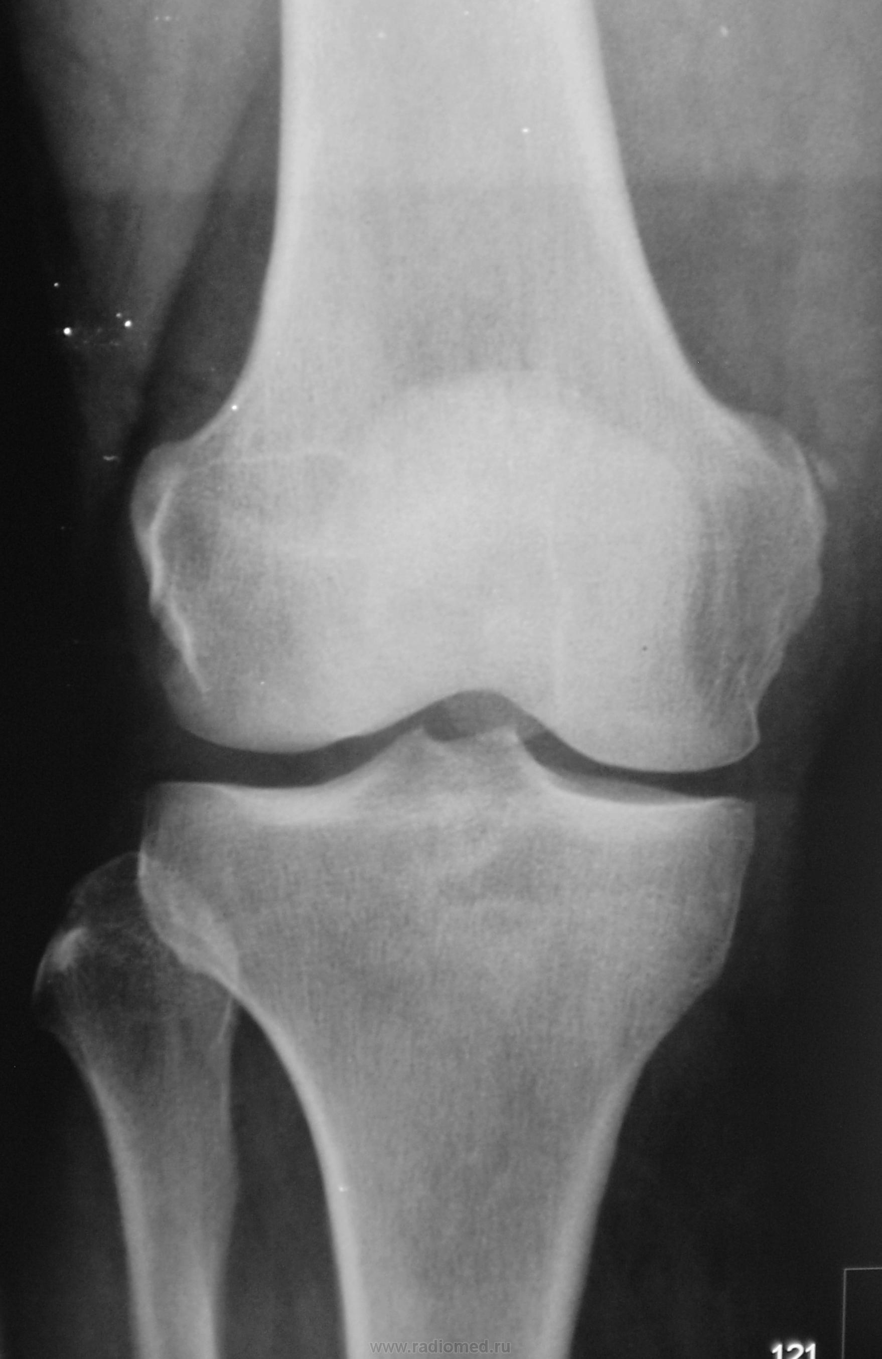 Костно-травматических изменний не выявлено. Участок линейного обызвествления у медиального надмыщелка бедренной кости - болезнь П.-Ш. (это я сократила