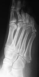 А мне не понравилась головка 2 плюсневой кости - уплощена, без видимых признаков перелома. Похоже на последствие остеохондропатии Келера?