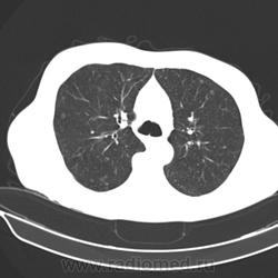 Здравствуйте! Пациент 1951 г. поступил в неврологическое отделение по поводу пареза нижней конечности, жалобы на боли в поясничном отделе позвоночника. Выполнили КТ пояснично-кресцового отдела: кт-картина остеобластических mts в телах позвонков L1-L3, крыле подвздошной кости слева. Клиницисты стали искать первичный очаг. Выполнили КТ органов грудной клетки. По всем легочным полям кольцевидные образования (очаги?) - аспергилёз? Прошу коллег помочь разобраться с заключением.