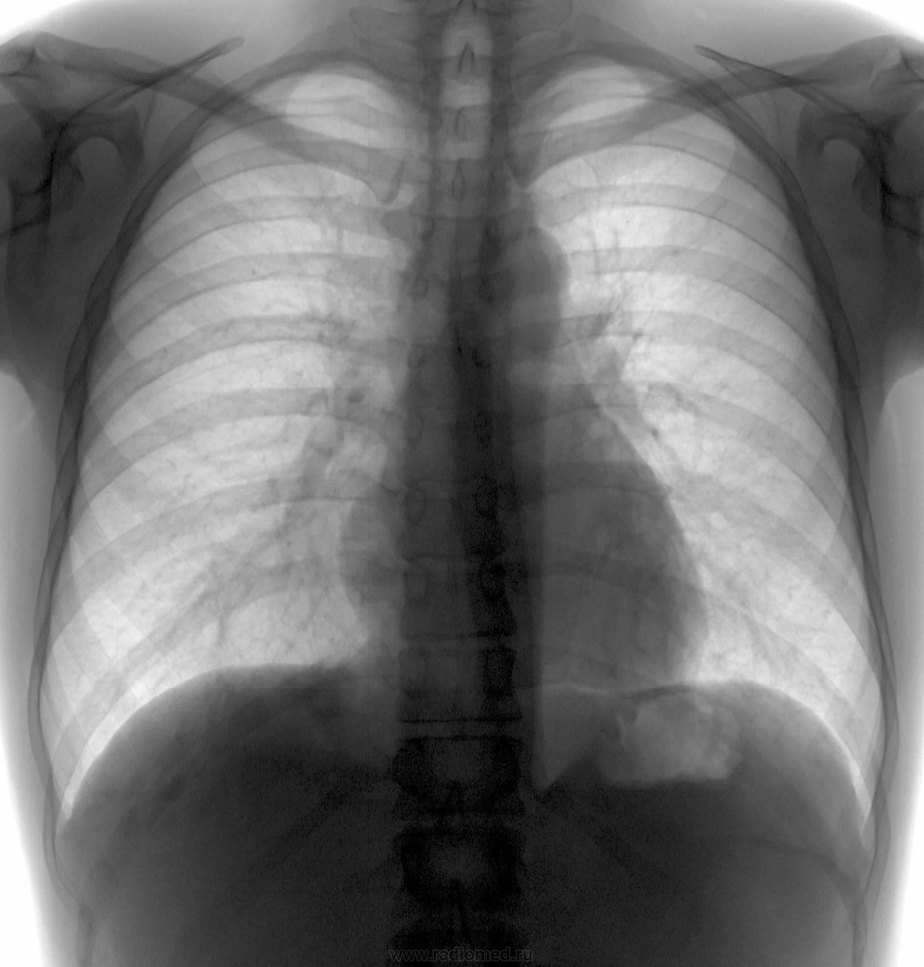 Молодая барышня 28 лет. На момент проведения ц ФГ жалоб нет. Представлена для контроль аналоговая рентгенограмма двухнедельной давности. Динамика отсутствует (посему не выставляю)