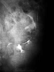 Поступила женщина 60 лет с клиникой нечеткой почечной колики после "перетруждения" на огороде, с жалобами на бурую мочу (которая к утру стала прозрачной и ничего, кроме микрогематурии не зафиксировалось). На эксреторке - такая картинка (продолжение темы насчет фантазии в рентгенологии).