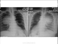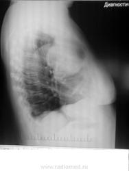 тенюха, что на прямой, что на боковой очень интимно связана с тенью восходящей аорты, да и контура (самостоятельного) восходящего отдела не видно, даже не угадывается... - сплошной туман. Вопрос к автору - ТРАВМА ГРУДНОЙ КЛЕТКИ У ПАЦИЕНТА БЫЛА?
