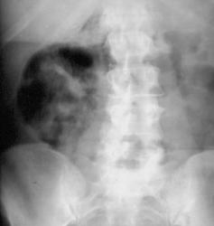 Дело было так. Наш хирург распечатал с инета данный снимок и принес его не планерку, со словами "что это". Снимок висел на сайте для абдоминальных хирургов, условие было такое: снимок весит 2 месяца потом раскрывают карты. версиий накопилось около сотни. Версия наших хирургов панкреанекроз, безоар толстой кишки. Рентгенологов эмфизематозный пиелонефрит и кишечный свищь в забрюшинку.