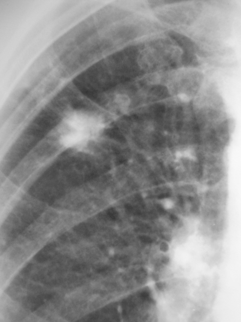 Конгломерат извести. При отсутсвии клиниколабораторных данных за активность туб. процесса я бы рискнул оставить пациента в покое на 3 месяца с последующим рентгенологическим контролем.