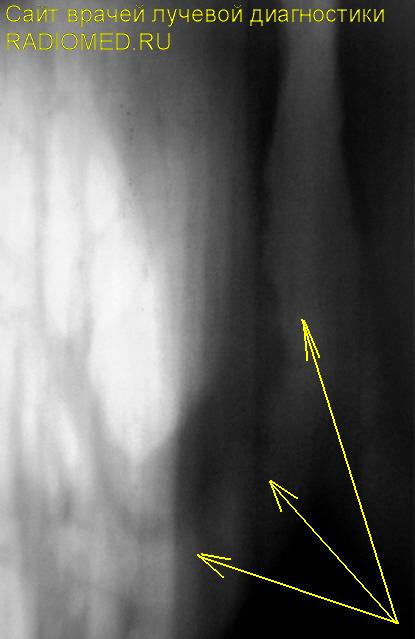 Пациент после расшифровки флюорограмм "взят на контроль" с учетом тени правого корня.