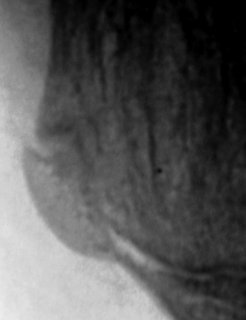 Пациент направлен в рентгеновский кабинет для рентгенографии пяточной кости. Произведены рентгенограммы в стандартных проекциях. Выявлен откол фрагмента костной ткани от латерального края пяточной кости почти у пяточного бугра.