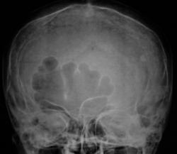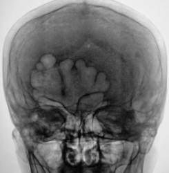 Уважаемый Валентин Львович, я так понимаю Вас смущает ячейки лобной пазухи? В данном случае надо обратить внимание на толщину костей крыши черепа, а следовательно и на турецкое седло, следует проконсультироваться у эндокринолога с дальнейшим проведением МР-исследования гипофиза.
