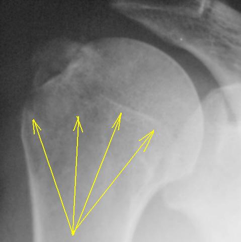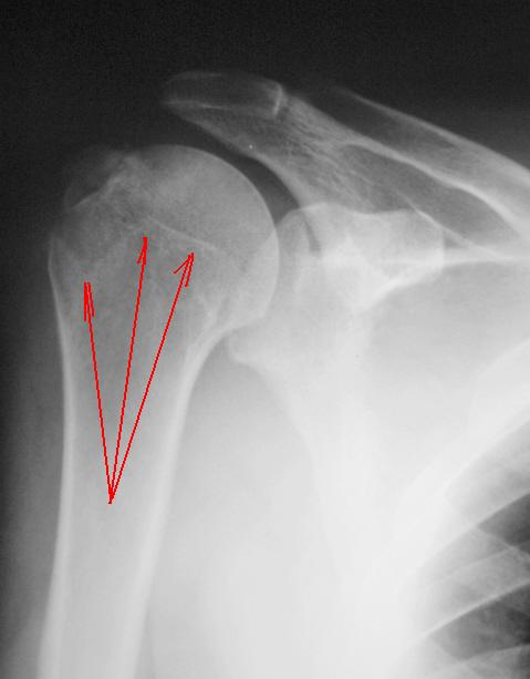 Мое мнение, что анатомическая шейка плечевой кости абсолютно интактная! Пациент достаточно молод.