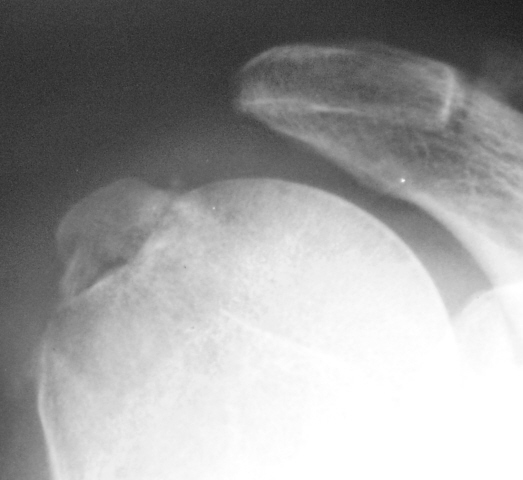 Травма. пациент направлен хирургом в рентгеновский кабинет для рентгенографии плечевого сустава. Были произведены рентгенограммы в двух проекциях. Могу представить, увы, только изображение в прямой проекции.