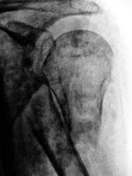 Пациент после репозиции и наложения "гипсовой повязки", направлен на контрольную рентгенографию.