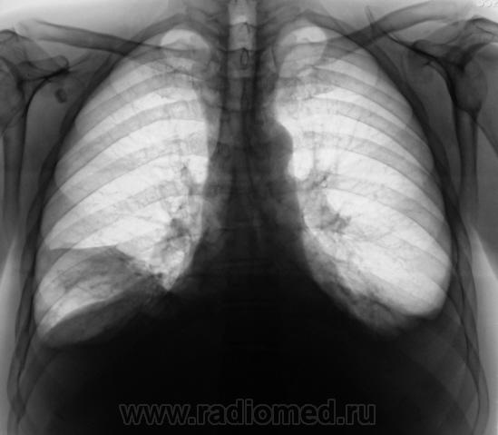 Междолевое осумкование выпота справа. Ну и конечно двустор.свободный.