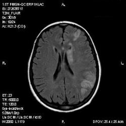 И это точно не РС, т.к. характер очагов другой, ни один из них не копит контраст, нет субтенториальных очагов (извиняюсь, я этого в сообщении не указал), нет клиники.