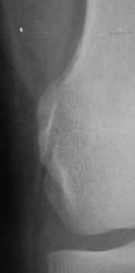 Определяется уплотнение кортикального слоя суставных поверхностей, заострение межмыщелковых возвышении, слабовыраженная краевая костная деформация - по совокупности тянет на ДОА I ст. Ну, а то, что на прицельной то это - игра теней - мое мнение.